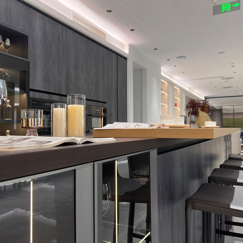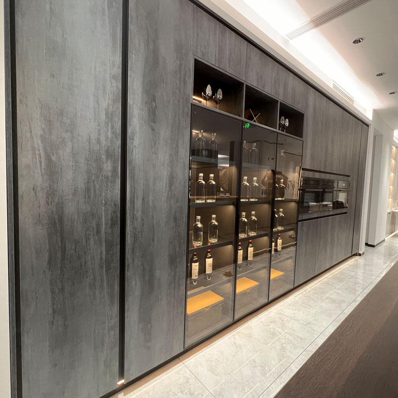 ကျောက်မိုးဒဏ်ကို ခံနိုင်ရည်ရှိခြင်းကဲ့သို့ အရောင်အသွေးဟောင်းများဖြင့် စတိုင်လ်အသစ်ပါရှိသော မီးဖိုချောင်သုံး ဗီရိုအသစ်သည် ထိတွေ့ခံစားရမှု ချောမွေ့ပြီး အရည်အသွေးကောင်းမွန်ပြီး အလူမီနီယံဘောင်ဖြင့် လိုက်ဖက်သော မှန်တံခါးချပ်ကြောင့် မီးဖိုချောင်အပြင်အဆင်ကို ခံစားချက်မြင့်မားစေသည်။ ပစ္စည်းသည် ရေစိုခံပြီး သန့်ရှင်းရလွယ်ကူပြီး စတိုင်လ်ကျရန် မလွယ်ကူပါ။